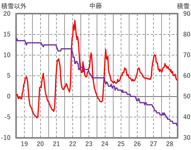 | 日 | 時 | 気温 | 降水 | 風向/風速 | 日照 | 積雪 | 降雪 |