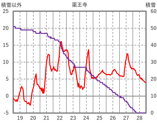 | 日 | 時 | 気温 | 降水 | 風向/風速 | 日照 | 積雪 | 降雪 |