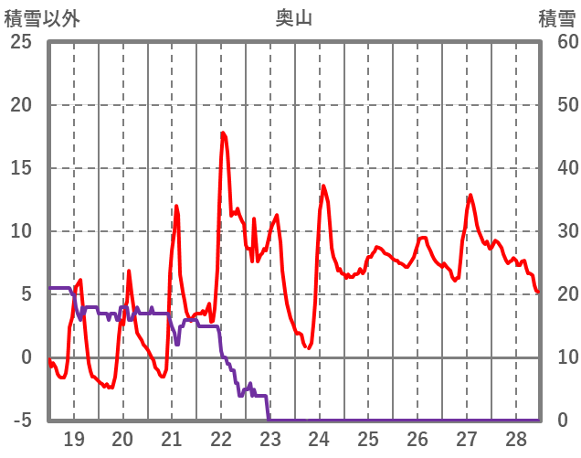 | 日 | 時 | 気温 | 降水 | 風向/風速 | 日照 | 積雪 | 降雪 |
