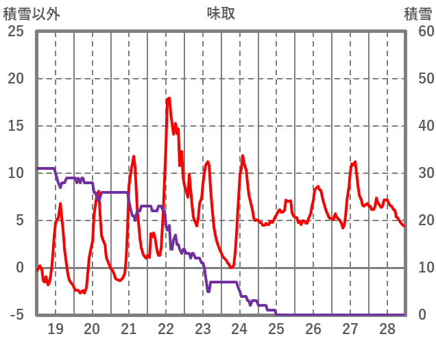 | 日 | 時 | 気温 | 降水 | 風向/風速 | 日照 | 積雪 | 降雪 |