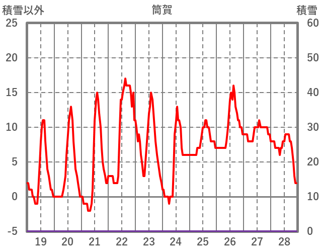 | 日 | 時 | 気温 | 降水 | 風向/風速 | 日照 | 積雪 | 降雪 |