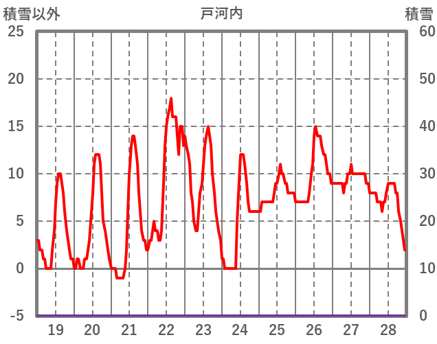 | 日 | 時 | 気温 | 降水 | 風向/風速 | 日照 | 積雪 | 降雪 |
