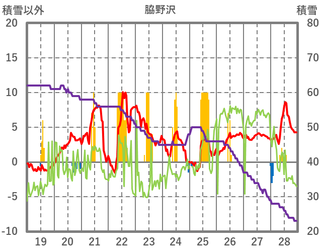 | 日 | 時 | 気温 | 降水 | 風向/風速 | 日照 | 積雪 | 降雪 |