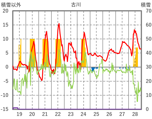 | 日 | 時 | 気温 | 降水 | 風向/風速 | 日照 | 積雪 | 降雪 |