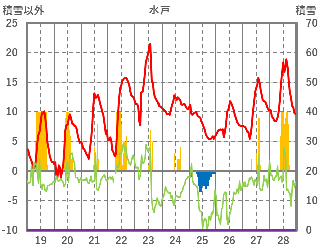 | 日 | 時 | 気温 | 降水 | 風向/風速 | 日照 | 積雪 | 降雪 |