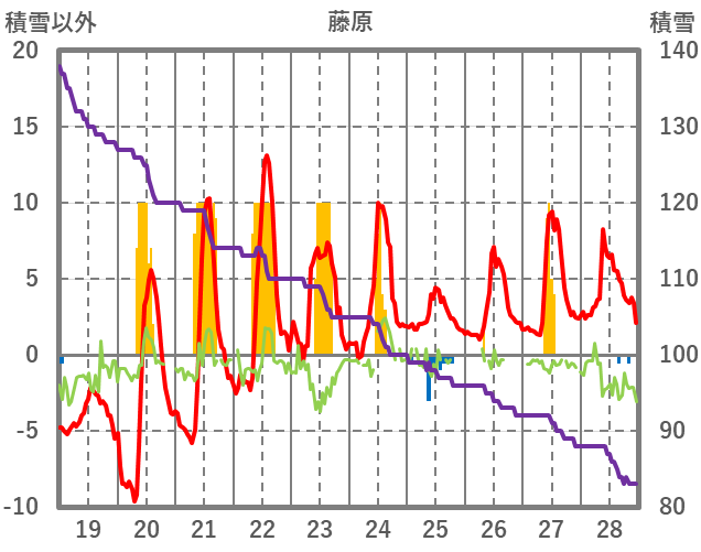 | 日 | 時 | 気温 | 降水 | 風向/風速 | 日照 | 積雪 | 降雪 |