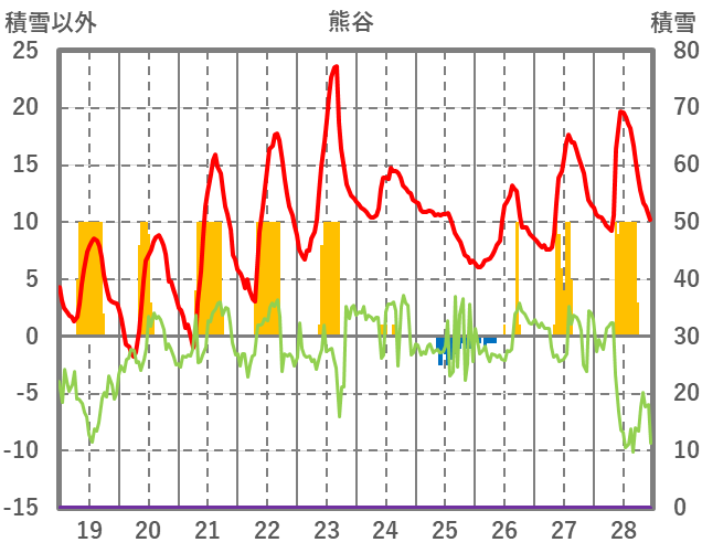 | 日 | 時 | 気温 | 降水 | 風向/風速 | 日照 | 積雪 | 降雪 |