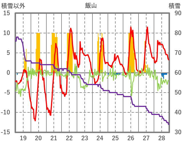 | 日 | 時 | 気温 | 降水 | 風向/風速 | 日照 | 積雪 | 降雪 |