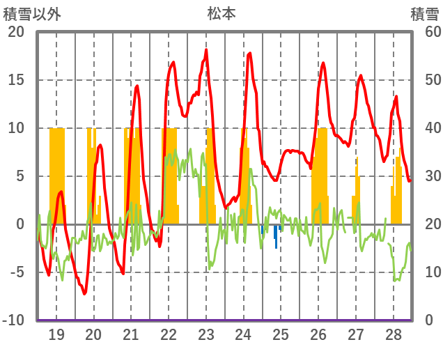 | 日 | 時 | 気温 | 降水 | 風向/風速 | 日照 | 積雪 | 降雪 |