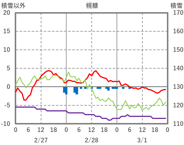 | 日 | 時 | 気温 | 降水 | 風向/風速 | 日照 | 積雪 | 降雪 |