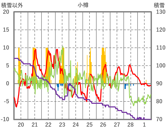 | 日 | 時 | 気温 | 降水 | 風向/風速 | 日照 | 積雪 | 降雪 |