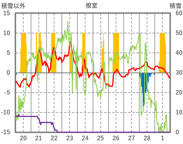 | 日 | 時 | 気温 | 降水 | 風向/風速 | 日照 | 積雪 | 降雪 |