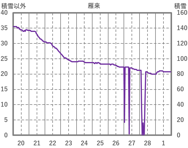 | 日 | 時 | 気温 | 降水 | 風向/風速 | 日照 | 積雪 | 降雪 |