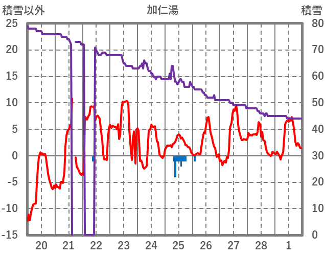| 日 | 時 | 気温 | 降水 | 風向/風速 | 日照 | 積雪 | 降雪 |