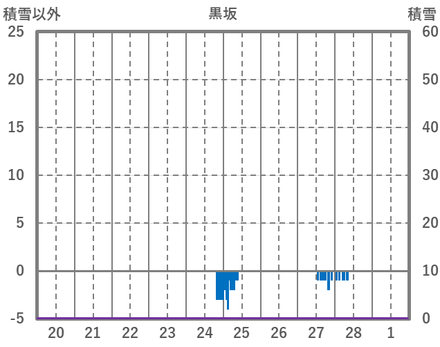 | 日 | 時 | 気温 | 降水 | 風向/風速 | 日照 | 積雪 | 降雪 |