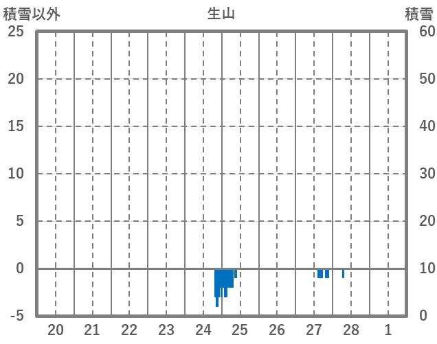 | 日 | 時 | 気温 | 降水 | 風向/風速 | 日照 | 積雪 | 降雪 |