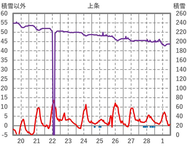 | 日 | 時 | 気温 | 降水 | 風向/風速 | 日照 | 積雪 | 降雪 |