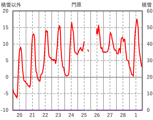 | 日 | 時 | 気温 | 降水 | 風向/風速 | 日照 | 積雪 | 降雪 |