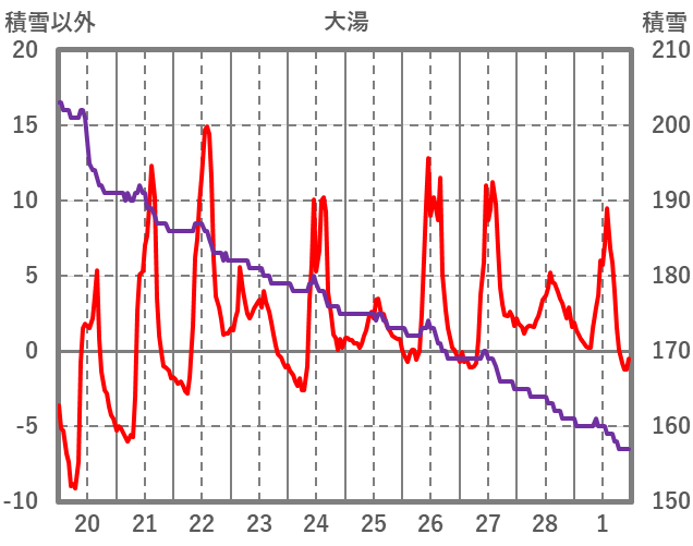 | 日 | 時 | 気温 | 降水 | 風向/風速 | 日照 | 積雪 | 降雪 |