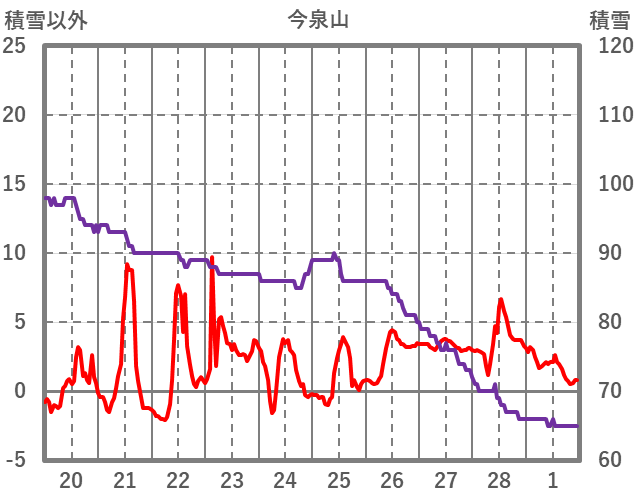 | 日 | 時 | 気温 | 降水 | 風向/風速 | 日照 | 積雪 | 降雪 |