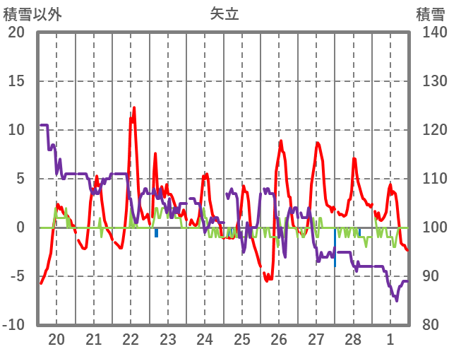 | 日 | 時 | 気温 | 降水 | 風向/風速 | 日照 | 積雪 | 降雪 |