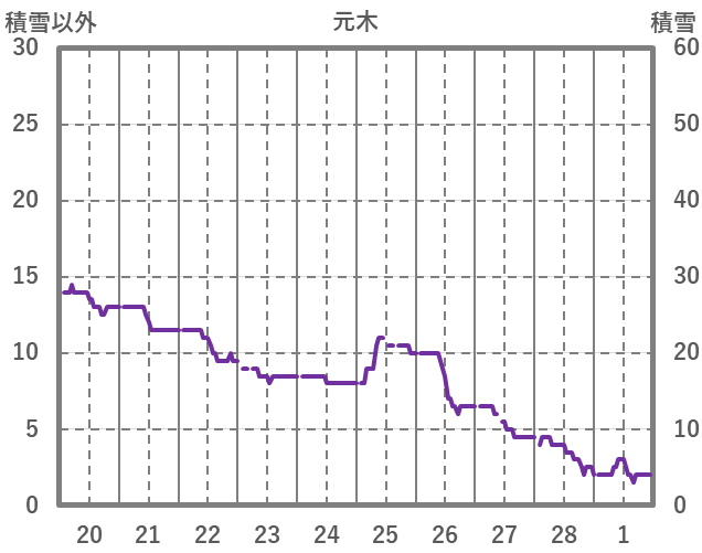 | 日 | 時 | 気温 | 降水 | 風向/風速 | 日照 | 積雪 | 降雪 |