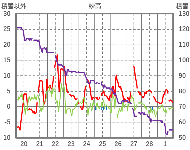 | 日 | 時 | 気温 | 降水 | 風向/風速 | 日照 | 積雪 | 降雪 |