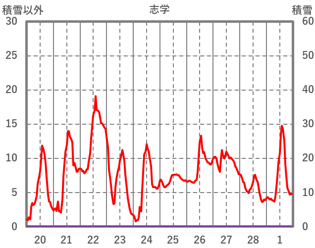 | 日 | 時 | 気温 | 降水 | 風向/風速 | 日照 | 積雪 | 降雪 |