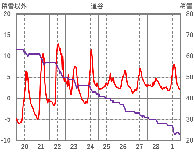 | 日 | 時 | 気温 | 降水 | 風向/風速 | 日照 | 積雪 | 降雪 |