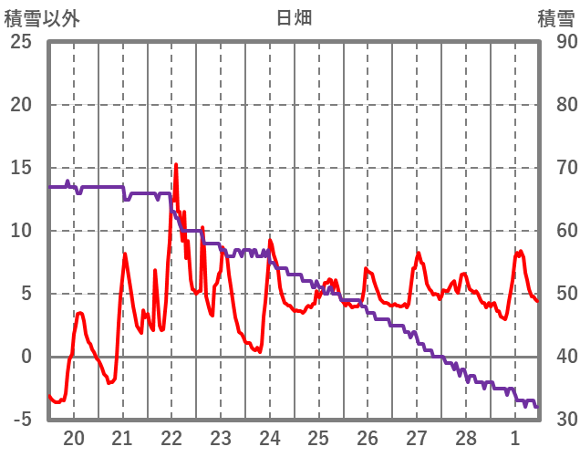 | 日 | 時 | 気温 | 降水 | 風向/風速 | 日照 | 積雪 | 降雪 |