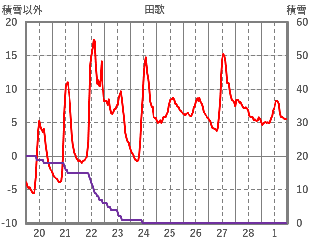 | 日 | 時 | 気温 | 降水 | 風向/風速 | 日照 | 積雪 | 降雪 |
