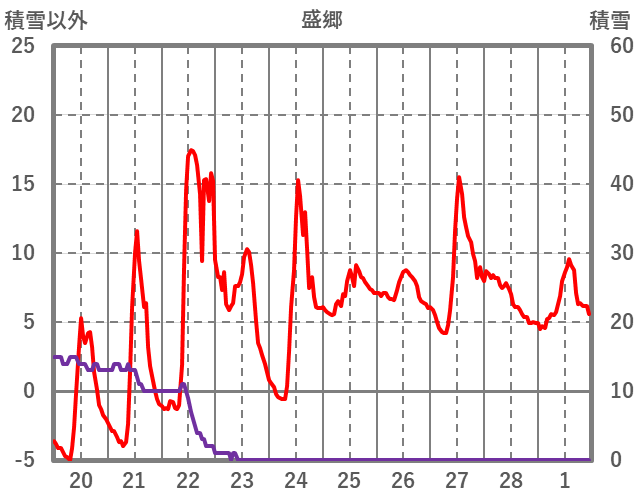 | 日 | 時 | 気温 | 降水 | 風向/風速 | 日照 | 積雪 | 降雪 |