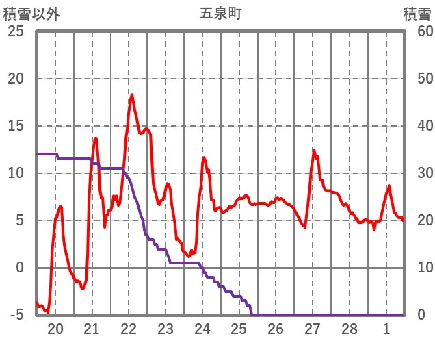| 日 | 時 | 気温 | 降水 | 風向/風速 | 日照 | 積雪 | 降雪 |