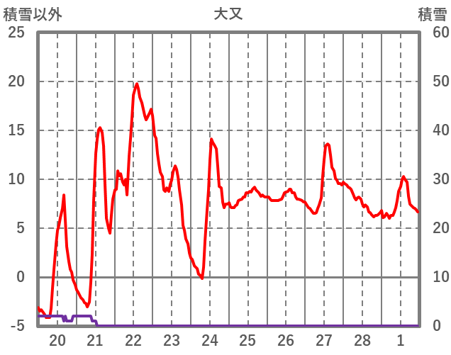 | 日 | 時 | 気温 | 降水 | 風向/風速 | 日照 | 積雪 | 降雪 |