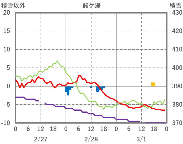 | 日 | 時 | 気温 | 降水 | 風向/風速 | 日照 | 積雪 | 降雪 |