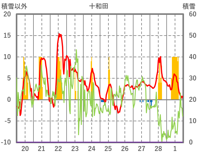 | 日 | 時 | 気温 | 降水 | 風向/風速 | 日照 | 積雪 | 降雪 |