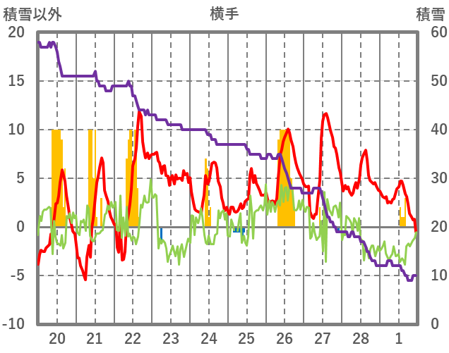 | 日 | 時 | 気温 | 降水 | 風向/風速 | 日照 | 積雪 | 降雪 |