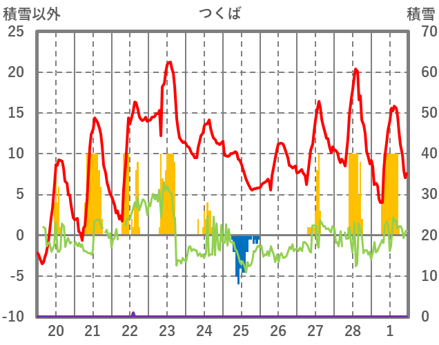 | 日 | 時 | 気温 | 降水 | 風向/風速 | 日照 | 積雪 | 降雪 |
