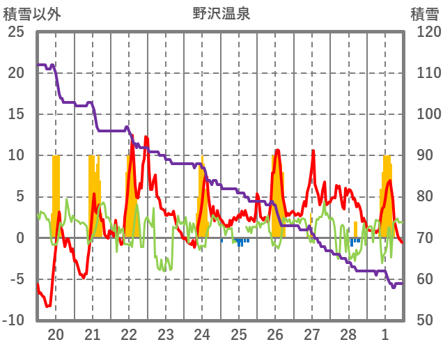 | 日 | 時 | 気温 | 降水 | 風向/風速 | 日照 | 積雪 | 降雪 |