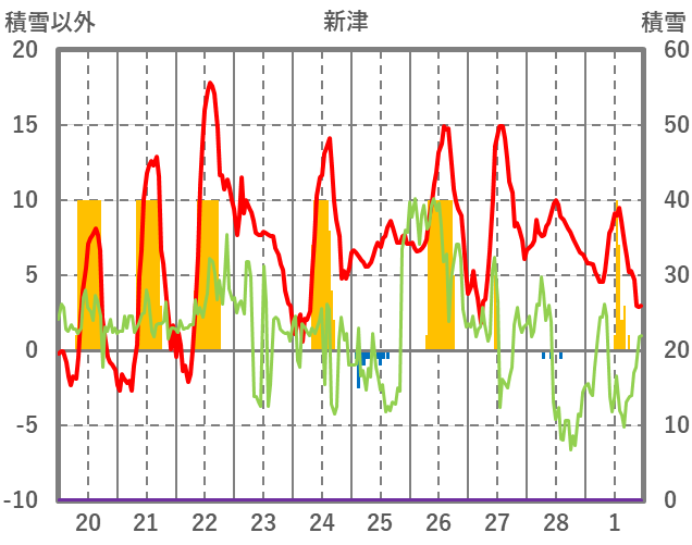 | 日 | 時 | 気温 | 降水 | 風向/風速 | 日照 | 積雪 | 降雪 |