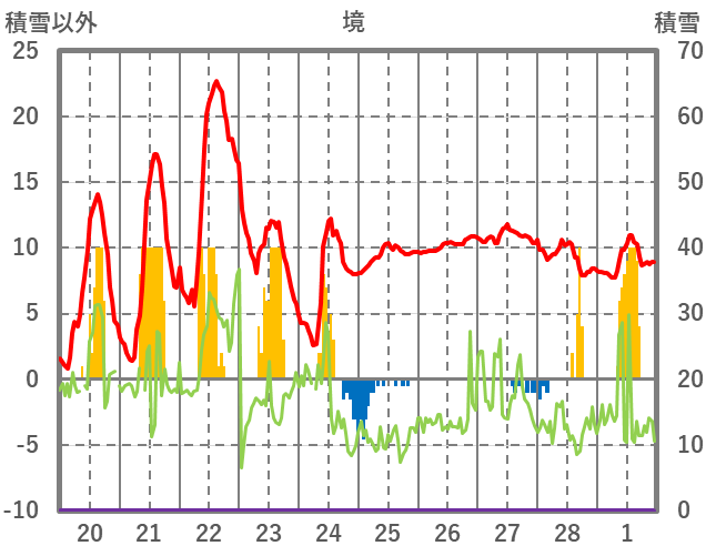 | 日 | 時 | 気温 | 降水 | 風向/風速 | 日照 | 積雪 | 降雪 |