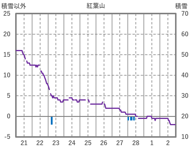 | 日 | 時 | 気温 | 降水 | 風向/風速 | 日照 | 積雪 | 降雪 |