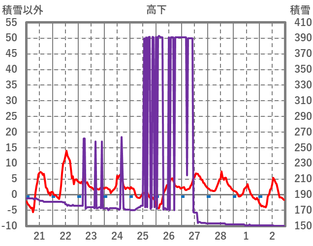 | 日 | 時 | 気温 | 降水 | 風向/風速 | 日照 | 積雪 | 降雪 |