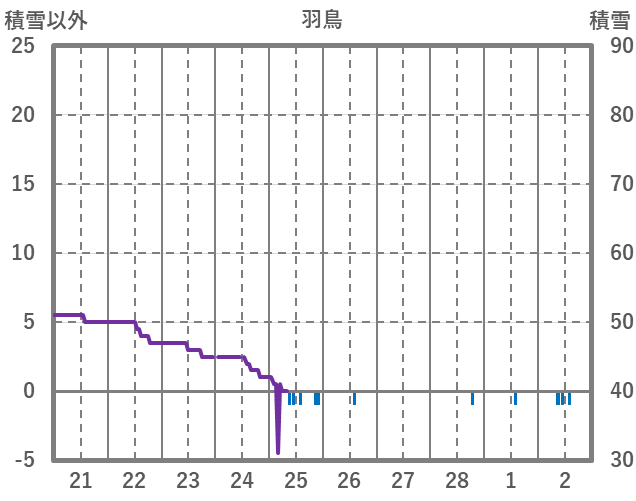 | 日 | 時 | 気温 | 降水 | 風向/風速 | 日照 | 積雪 | 降雪 |