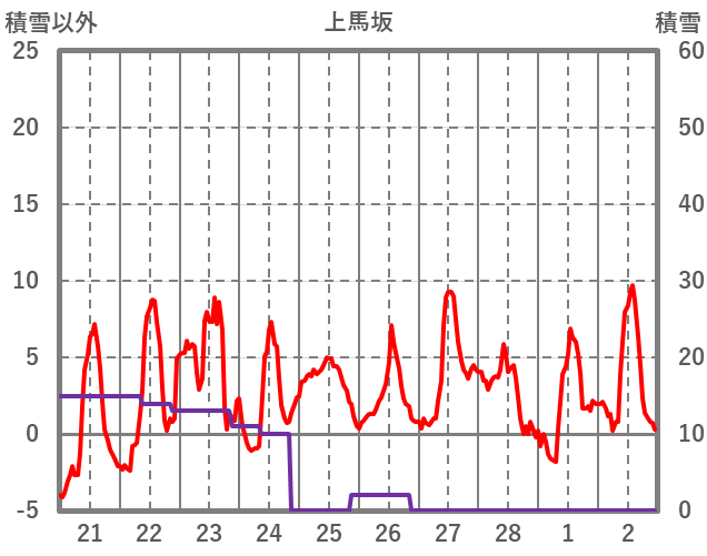 | 日 | 時 | 気温 | 降水 | 風向/風速 | 日照 | 積雪 | 降雪 |