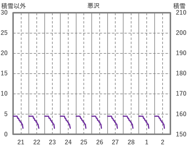 | 日 | 時 | 気温 | 降水 | 風向/風速 | 日照 | 積雪 | 降雪 |