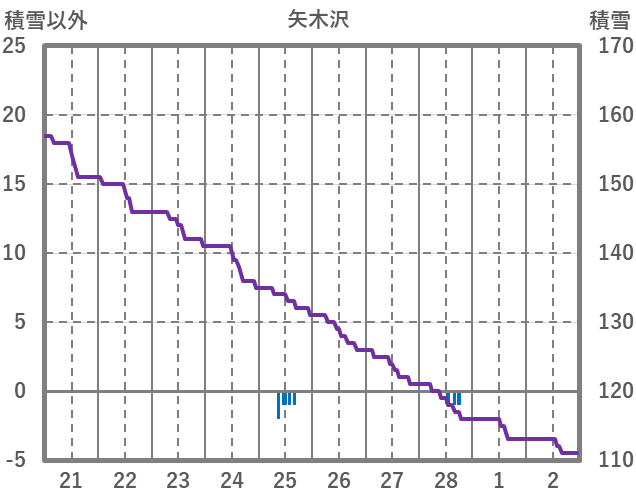 | 日 | 時 | 気温 | 降水 | 風向/風速 | 日照 | 積雪 | 降雪 |