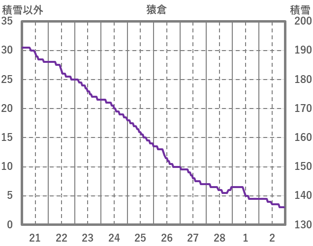 | 日 | 時 | 気温 | 降水 | 風向/風速 | 日照 | 積雪 | 降雪 |