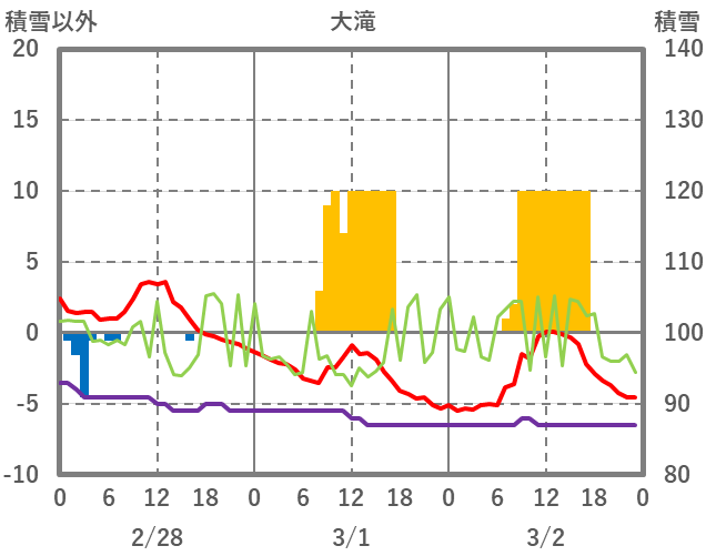 | 日 | 時 | 気温 | 降水 | 風向/風速 | 日照 | 積雪 | 降雪 |