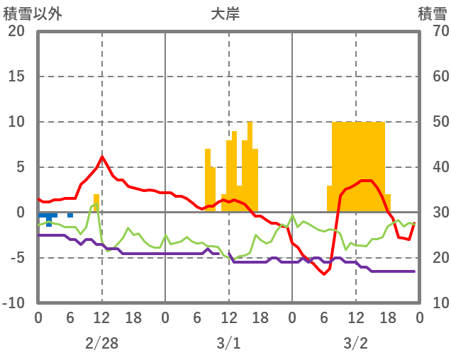 | 日 | 時 | 気温 | 降水 | 風向/風速 | 日照 | 積雪 | 降雪 |